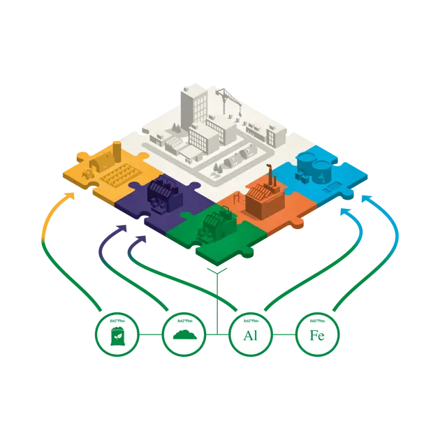 These co-products are recovered in a purified, ready-to-market quality and can either directly be used as coagulants in wastewater treatment, or in the chemical industry, as basis for a multitude of production processes.